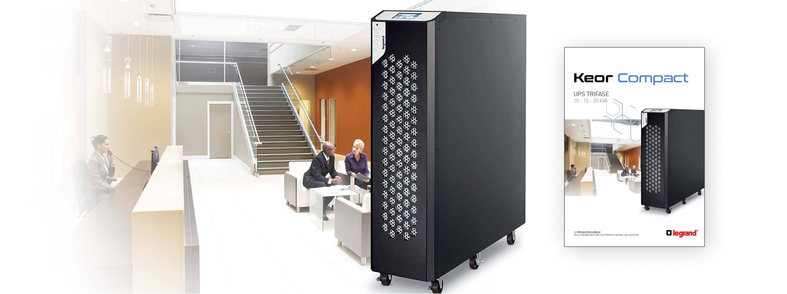Keor Compact è un UPS trifase online a doppia conversione, ideale per tutte le tipiche applicazioni trifase a bassa potenza come uffici, attività commerciali e terziario. Grazie alle sue dimensioni ridotte, Keor Compact è perfetto per una semplice installazione anche in piccoli locali tecnici.